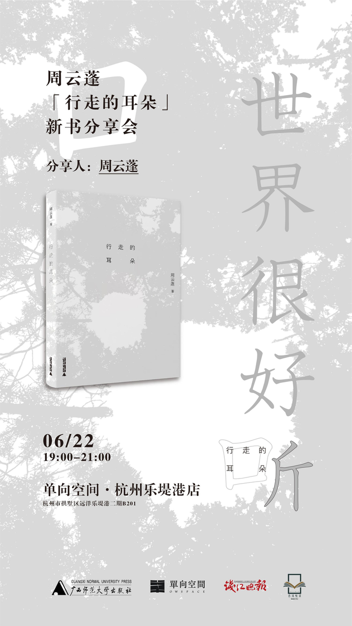 从绍兴、大理,从祁连、西藏,到纽约、吴哥窟、伊斯坦布尔……周云蓬说:“一个人跟一个城市是有命定的缘分的,你生在哪儿死在哪儿,在哪儿恋爱,在哪儿安度晚年,行止处冥冥中自有天定。”但我们仍然可以选择一路行走,一路歌唱。《行走的耳朵》,周云蓬最新随笔集发布,写他一直以来的歌唱、行走,以及读书。这次我们不听歌,听周云蓬来说。