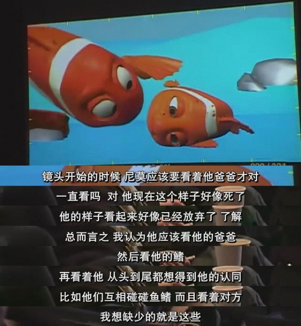 这天,一位动画师把尼莫和他爸爸对话的一个片段放给大家看,在一片欢快的气氛中,导演安德鲁·斯坦顿提出非常具体的修改意见。大家可以看到,原来一部好看的动画片,背后其实是像做大理石雕塑一样,一点一点精心打磨出来的。