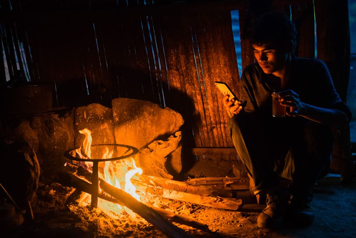 ▲太阳一落山,山上就会很凉,言秀邓生起火,给自己冲了杯自己种的咖啡