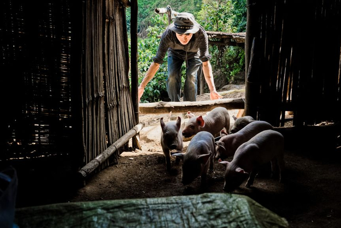 ▲言秀邓一家四口现在已经住进了政府统一修建的新房子,他当时结婚建的“家”,现在成了生产用房。由于咖啡收入低,今年言秀邓特地还养了11头猪,以给弟弟成家时作为娶媳妇的聘礼和婚礼请客之用