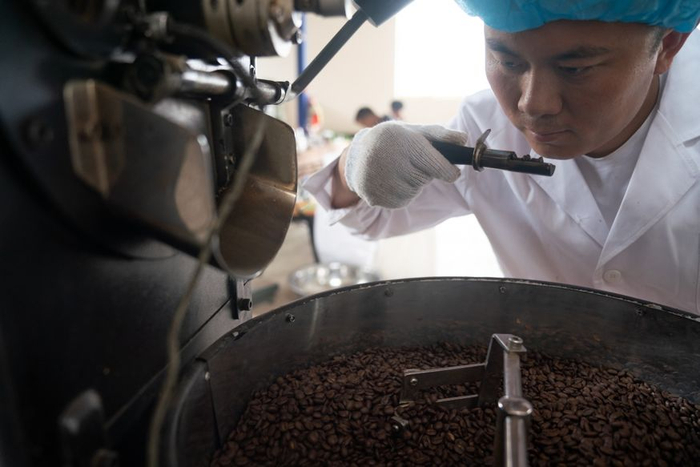 ▲普通农货长出来就能卖,而一粒精品咖啡豆,因品种、生长、环境、气候、采摘、加工、晾晒、分级、烘焙、冲泡等每个环节和流程的不同,口感香气千变万化,价值也就有了高低之分。晏永交为此他已经潜心学习摸索了七八年时间。通过精细化加工生产,他家的咖啡豆每斤已经可以卖到几十上百元,客户不仅有北上广的咖啡商,也有韩国台湾的咖啡店直接定货