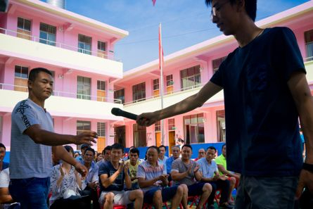 ▲为了扶持丛岗村咖啡品牌的打造和“新农商”机制的运行,“拼多多”请来贫困户们当场选择满意的经理人。“拼多多”在农产品领域强大的通路打造能力,将给丛岗咖啡注入“强心针”