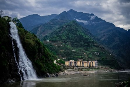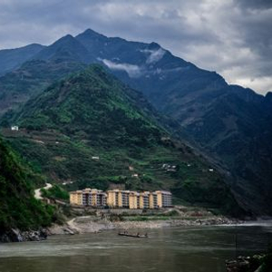 ▲在怒江边,一处异地搬迁扶贫的项目在峡谷中见缝插针。怒江峡谷山陡地少,生存环境恶劣,扶贫及经济发展任务艰巨