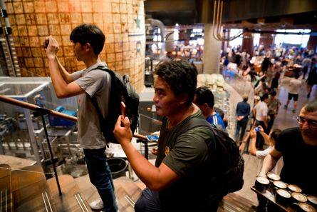 ▲在星巴克最大的体验店里,整天与咖啡树打交道的咖农们第一次走进咖啡馆,咖农们的手机已经停不下来了
