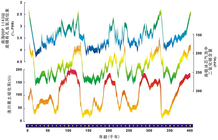 图1 深海沉积、冰芯、黄土记录的冰期-间冰期旋回(田军,2010)