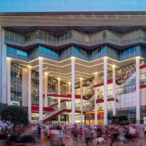 其次是通过技术实现建筑空间的改造升级。项目地处繁华闹市,上面有超高层写字楼,下面又有轨交线路,改造时需要在原结构楼板和立面上打很多洞、抽掉柱子等,现行的建筑规范已经与当年有很大不同。要确保大规模结构改造的安全性,同时建筑改造过程又不能影响城市街道及写字楼的正常使用,这都给建筑改造带来了很多挑战。最终天华运用了总计数十种结构加固技术,妥善处理对原有建筑构件、机电设备等的改造、新建和保留工程衔接处理,让改造的概念设计得以完美呈现。
