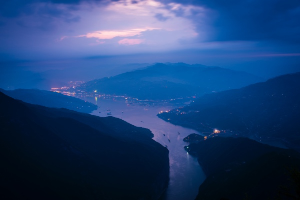 瞿塘峡夜景 丁海笑 图。本文为作者丁海笑为 澎湃新闻 | 私家地理 栏目特约撰稿,谢绝转载。
