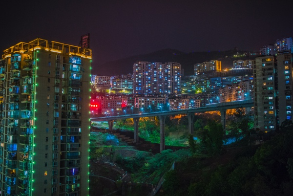 奉节新城是一座立体的城市。空中人行道、水泥吊脚楼随处可见,无数的暗门上上下下,房屋一阶一阶的向上垒。夜幕降临,我似乎置身于一座赛博朋克式的淡紫色寨城,明明灭灭的霓虹灯随山势向上。