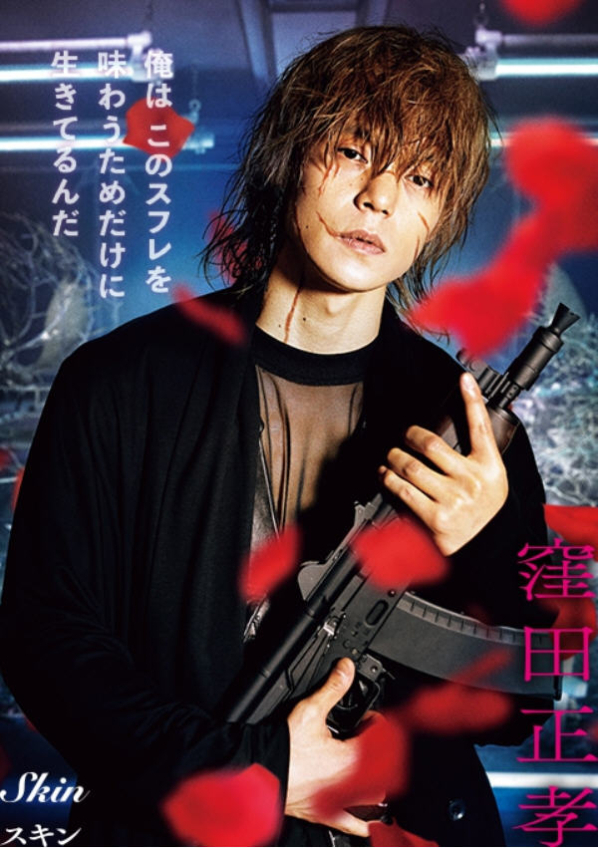 毫无疑问,这样的文字表述当然可以被视觉化,但代价将是会给整部作品在电影分级上带来相当的麻烦。可能是由于这个原因,“原著党”看到电影《杀手餐厅》时的心情,实在是相当复杂。电影大体上延续了小说中的人物设定。模特出身的玉城TINA扮演的少女大场加奈子(日语谐音“大傻瓜女孩”)意外卷入黑帮争斗,并被卖到了“杀手餐厅”做服务生,而在她之前的不幸者的造型就挂在墙上。有意思的是,电影中将这些照片动态化,让观众可以清楚地看到她们的动作,也能认出这些花瓶角色的扮演者——诸如现在“IZONE”组合中的“小樱花”(宫胁咲良)这样的“爱豆”。而藤原龙也则扮演“杀手餐厅”的所有人兼主厨,邦贝罗。这个人物形象倒也能够让人想起他的成名作品,2004年“大河剧”《新选组》中的角色“冲田总司”——一位剑术高超的杀手。