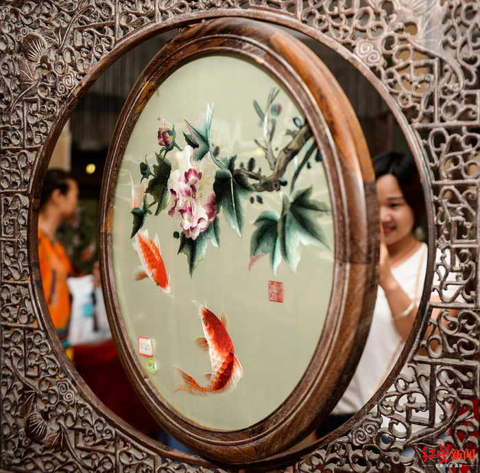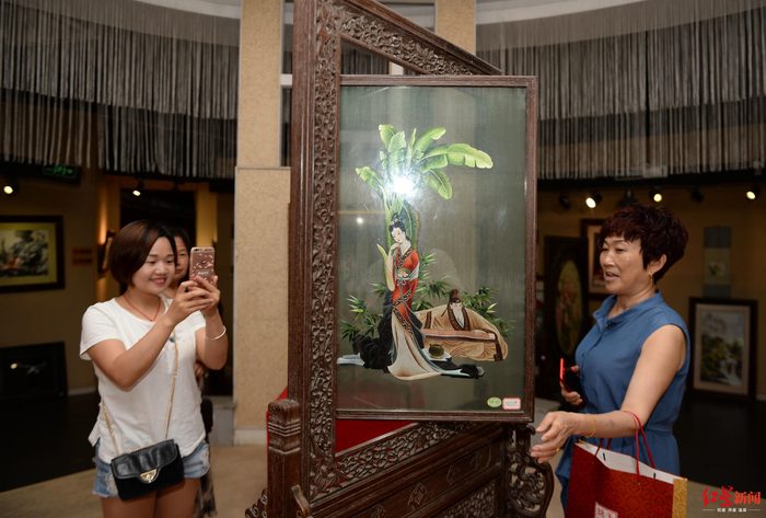 △观众参观蜀绣艺术品