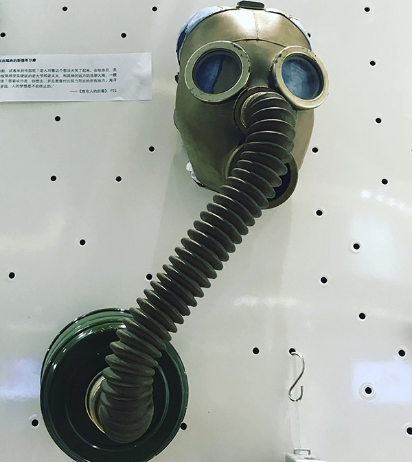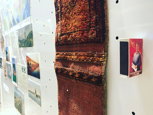 第二、三块展板上的地图、明信片、手工皮鞋、苏联制造儿童防毒面具等等小物品,被夫妇俩归纳为展览第二部分“东西”。是他们从上海出发,一路向西前行的沿途观察记。
