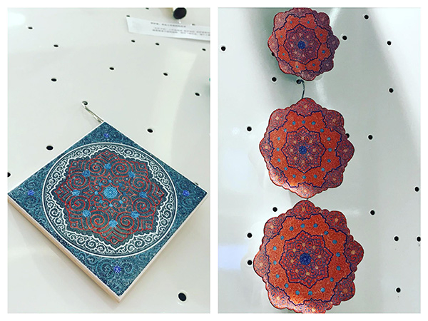 展板左右分别挂着蓝色、红色手绘珐琅盘。黎瑾告诉记者,这不是他们此次环亚欧之旅采购的,而是纪先生在2014年去伊斯法罕的一个巴扎里买下的。