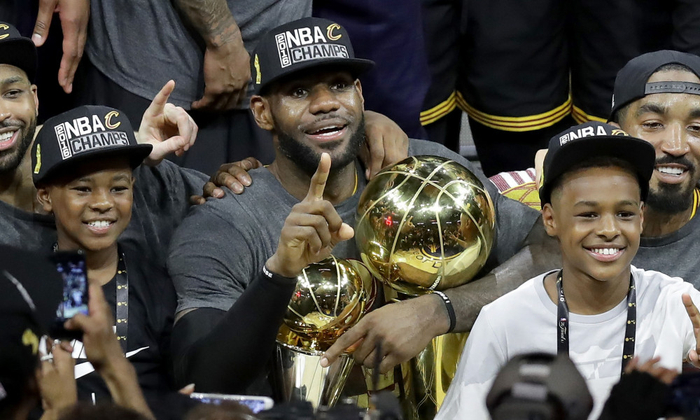 詹姆斯和大儿子小勒布朗、二儿子布朗尼