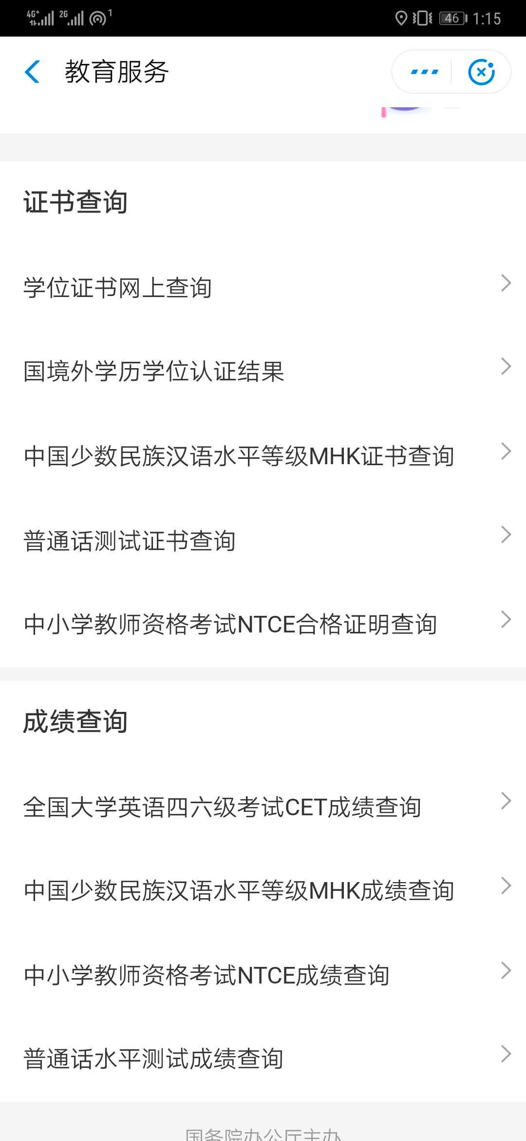 在手机上,用户可以通过支付宝微信搜索小程序“中国政务服务平台”,体验相关服务,其中就包括四六级、高考等考试成绩查分,和学位证、教师资格等证书(证明)查询等服务。
