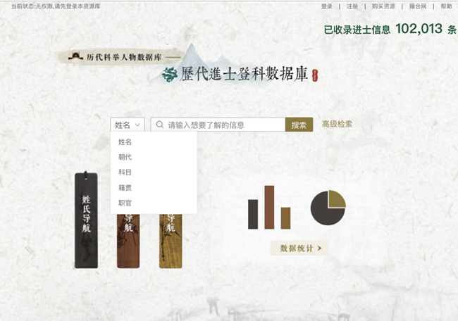 《历代进士登科数据库》堪称中国古代“学霸”信息迄今最全面的一次集纳,目标涵盖公元6世纪以来1300年中历代进士登科人物的资料。数据库的信息来源是浙大龚延明教授的学术项目《中国历代登科总录》,目前已经收录进士信息102013人。“每名进士一小传,列登科人姓名、字、号,籍贯,有仕履的亲属,哪年登科,以及初授官、最重要历官、终任官、谥号。每个小传都有书证支撑,每一条书证都是从第一手科举文献和相关的历史文献资料中抄录下来。可以说字字有来历,条条有出处。”论坛上,龚延明教授介绍说。