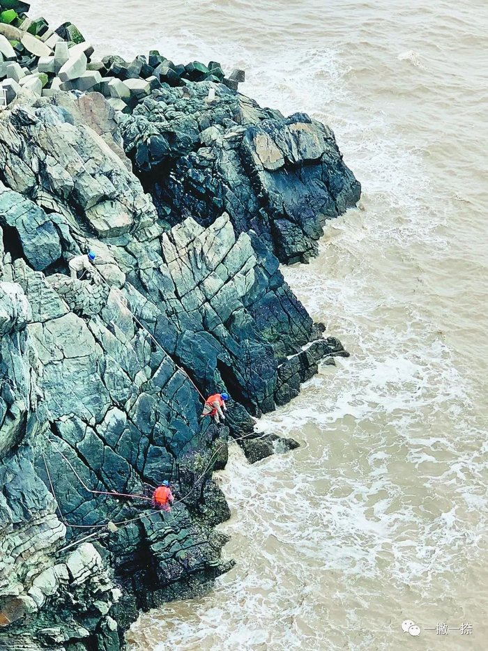 近日,在江苏连云港开山岛西南角,一台30千瓦风力发电机成功架设,微电网二期工程取得阶段性进展。该工程配合新建的海水淡化系统,守岛民兵的日常用电用水难题有望得到彻底解决。图为工作人员沿着岛上数十米高的悬崖,将风光储互补智能微电网系统接地线敷设入海。夏衍 摄(新华社发)