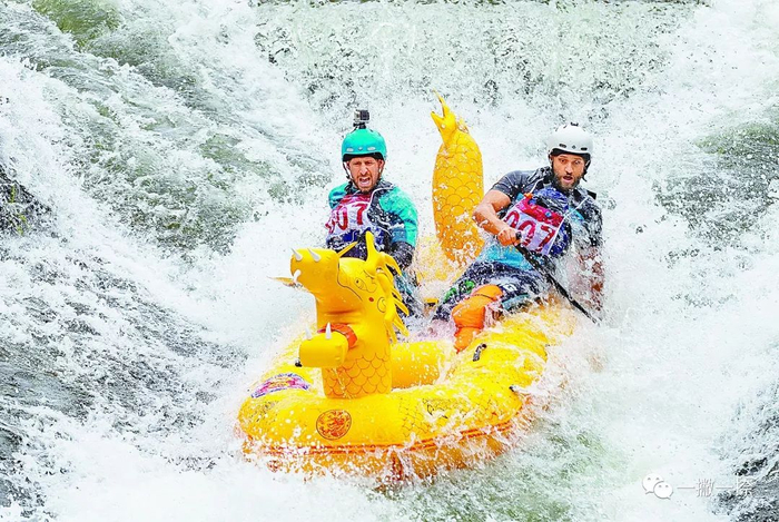 6月16日,2019中国宜昌自然水域国际极限漂流F1大奖赛总决赛在湖北省兴山县朝天吼漂流景区落下帷幕。图为参赛选手在比赛中。史家民 摄