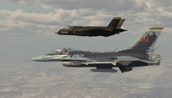 资料图片:美空军F-16C与F-35A隐身战机编队飞行。(图片来源于网络)