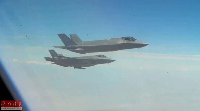 参加联合巡航的美军F-35A,翼下外挂有2枚“响尾蛇”近距格斗导弹。