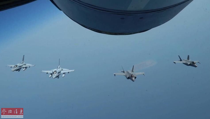 【延伸阅读】联合威慑!美F-35与盟军F-16巡航波斯湾