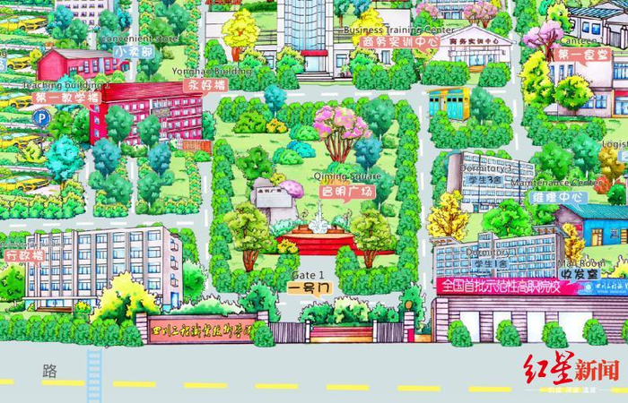 毕业在即,四川工程技术学院17名学生在老师指导下,历时一年,创作300多张图,用手绘的形式展现学校的风貌,制作成校园地图。该地图不仅是新生的“导航手册”,也是毕业生最好的“纪念品”。6月24日,创作者之一赵欣在接受红星新闻记者采访时坦言,“卡通版地图比较欢迎,很多同学都在转发。”