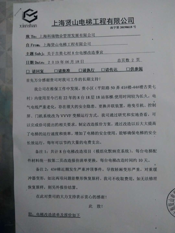 该公司还在上述文件中表示,其在维保工作中发现,古美七村8台电梯使用至今已有22年,“电气电线严重老化,存在很大的安全隐患”。