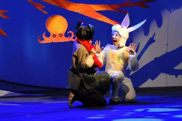 第四,现在很多儿童剧以互动为主,演员会走进孩子中间进行交流。在互动环节,家长可以放心大胆地让孩子说话甚至呼喊。但当演员开始进入正戏时,也就是演员开始有对话及肢体表演时,家长就需要让孩子安静下来。如果这时家长不及时进行干预,会干扰演员的正常表演。