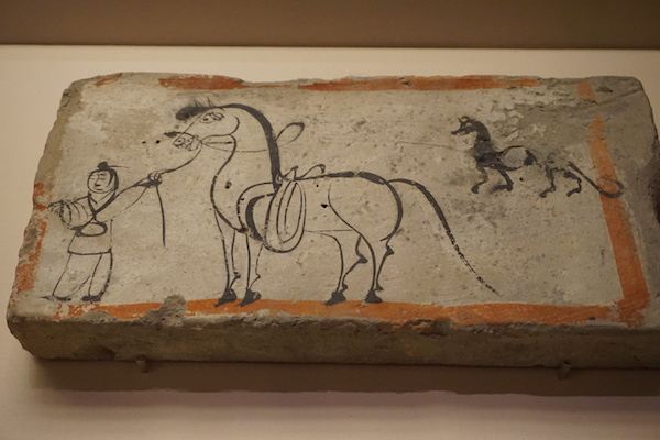 墓室壁画砖,绘以马的形象。