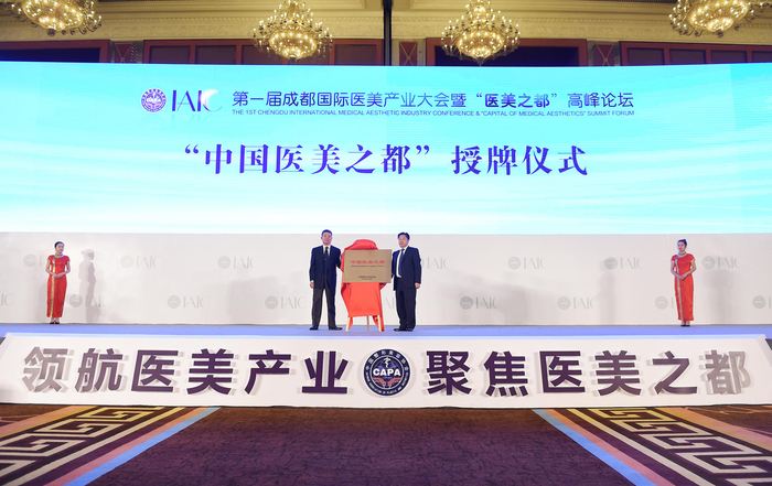 2018年6月8日,四川省成都市,第一届中国国际医美产业大会暨“医美之都”高峰论坛开幕式。中国整形美容协会授予成都市“中国医美之都”称号/红星新闻记者 张士博