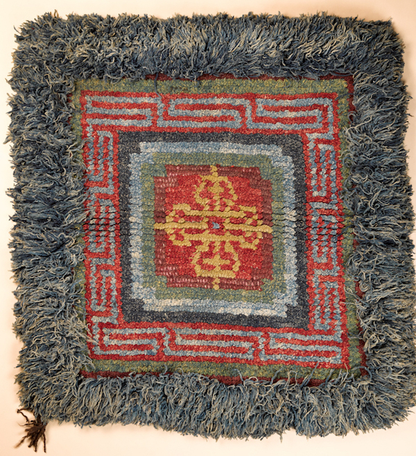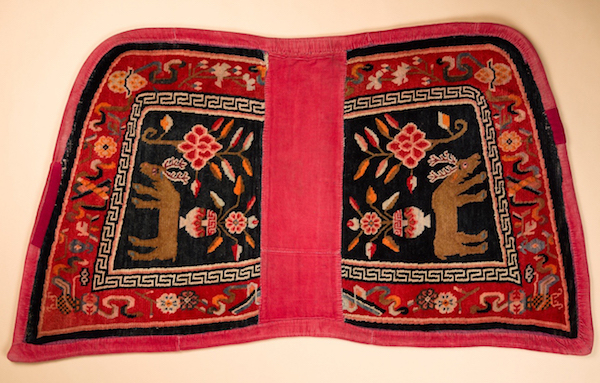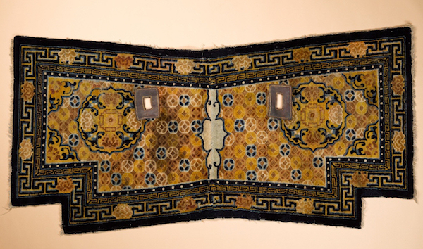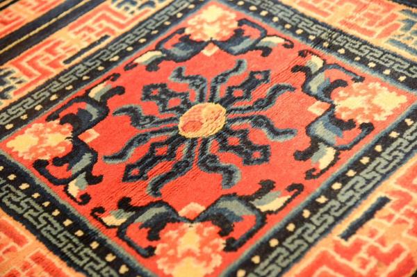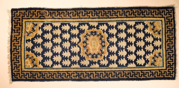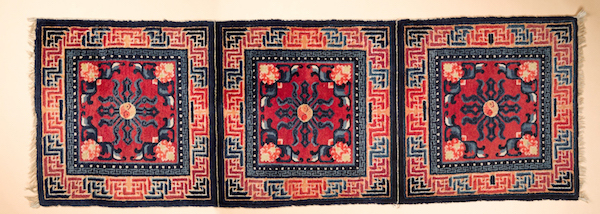 这批地毯是波斯特博士自20世纪80年代起在中国收集所得,产地主要为宁夏和西藏,另有少数来自内蒙古等地,均为19~20世纪的织品。经过国内多位地毯专家的鉴定,发现该批地毯种类多样,有卡垫(坐垫毯)、马鞍毯、坐禅毯、靠背垫毯、抱柱毯和闶毯等;纹样有佛教(七珍八宝)、道教(暗八仙)、宫廷艺术(龙、海水江崖)等多种样式,风格多元。也有富贵长寿、平安吉祥等寓意的花鸟等题材。其中的藏毯和蒙古地毯品相尤好,属于珍贵品。据波斯特博士来信所述,该批地毯的寻访和收藏是他在上海、香港任职期间以及前后多次访问中国时进行的,其中不少西藏和内蒙古地毯都由波斯特博士亲自前往当地挑选,凝蓄着他对中国地毯的珍视。