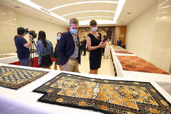 上海博物馆现场展示入藏的12件中国古艺毯(王溶江供图)