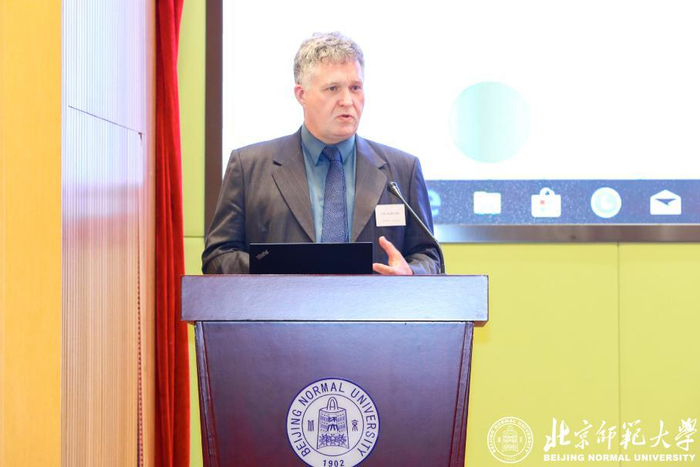 余胜泉教授在欢迎词中,从历史名城、现代之城、文化之城、宜居之城四个方面向参会嘉宾介绍了首都北京。随后介绍了北京师范大学,他指出北京师范大学近年来一直致力于融合脑认知、心理、计算机等多学科的优势,发现教与学过程中的规律,探索利用信息技术促进学习与教学的方法策略,并作为核心召集人,推动了两项学习、教育和培训相关的国际标准的制定,在国家标准方面,以核心起草人的身份起草了6项国家信息技术标准,同时也以核心参与者的身份参与了10余项相关国际国内标准的制定,其领域涵盖了在线课程建设、虚拟学习环境、在线课程、学习资源和服务等方面,为推动教育信息化的发展做出了积极努力。