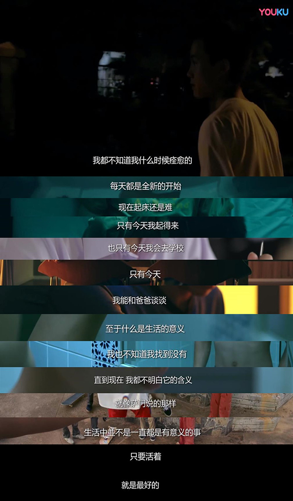 每一项极限运动之于参与者,都可能是一次自我疗愈的过程。即便观众不玩滑板,但《极限S:滑板篇》《滑板少年》这些与滑板有关的影像仍有打动人心的力量,不全是滑板的技巧性、欣赏性,更是我们一同见证每一个滑手是怎样在One More Try中克服恐惧、熬过痛苦、寻求释放,并最终借助滑板自我疗愈的。