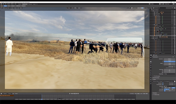 在法证建筑,我们使用3D模型作为动态数字环境来定位摄像机和其他设备。由于线上收集的大多数视频和图像都不携带元数据,我们需要在我们的“操作模型”里对它们进行地理定位。模型还通过将模拟的阴影与图像中的阴影比对,或云的移动来确定图像的时间。