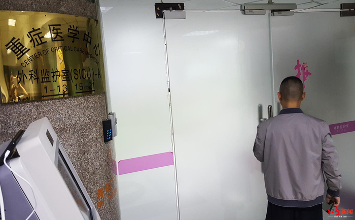 儿子施春辉在监护室外焦急地等候