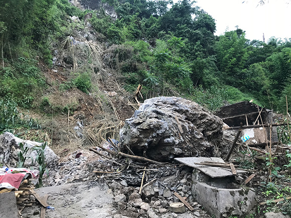 宋宗彬的房子被落石彻底砸毁。