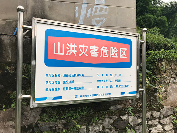 宋宗彬家门前的山洪灾害危险区提示牌