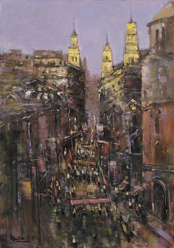 陈燮君,《圆明园路风情街》,布面油画
