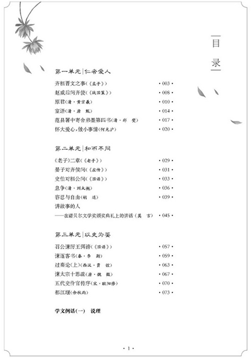 教材分为十二单元,每单元有一个共同的人文主题,教材中所选多是古今中外的优秀作品,堪称全人类创造的思想文化精粹,在总体上传递出对中国固有人文传统与现代思想观念相贯通的理解,这恰是“人文性”的体现。另一方面,“学文例话”是本教材的一个显著特色,有“说理”“抒情”“叙事”“写人”四篇,主要从表达方式着眼来谈阅读与写作问题,每篇设置在三个单元,也就是一个大的课文组合后面,其内容要点与这三个单元课文运用的主要表达方式形式一定呼应。以第一至第三单元为例,其中课文多选议论说理性文章,故其后的“学文例话”即安排为“说理”。在教学中,教师可引导学生全身心投入,悉心体验和揣摩这些经典篇目,在感悟和品味中发展自己的思维和情感,同时增强语言运用能力,可视为对“工具性”的有效实践。
