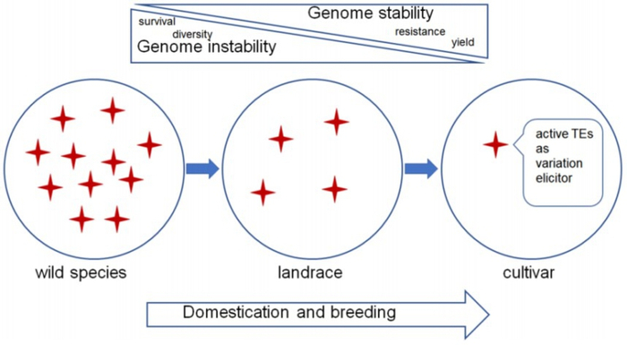 转座子是高等生物基因组的主要组成部分,约占水稻基因组的35%,人基因组的45%,小麦基因组的90%。作为进化的动力来源,转座子为基因组结构变异、新基因产生、基因功能多样化提供了物质基础,保持了基因组的不稳定能力,为物种适应复杂多变的自然环境提供了基础。已在多种作物中发现转座子参与驯化过程,如玉米、番茄、葡萄、甜橙、橡胶树,转座子活动导致功能基因变异,产生人们喜爱的农艺性状而被选择。然而转座子本身是否像功能基因一样作为驯化选择的靶标还未有报道。