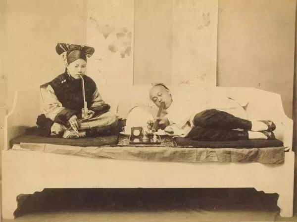 正在吸食鸦片的中国人
