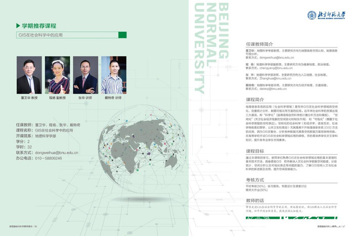 2019年春季学期,为满足全校师生对地理信息科学的了解与应用需求,北师大面向非地理学专业本科生开设两门学校通识教育课程,分别是“GIS在社会科学的应用”和“GIS在自然科学的应用”。
