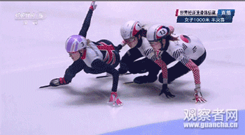 去年3月的短道速滑世锦赛上,女子1000米半决赛中,韩国名将沈石溪和崔敏静正在竞争一个第二名的位置。