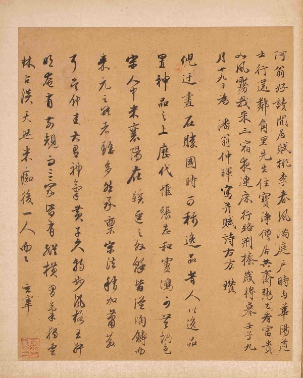 董其昌之所以为执画坛牛耳者,是因为董氏之交游,其山水以华亭前辈顾正谊、莫是龙为师,又兼得嘉兴天籁阁主人项元汴等人藏品的滋养,在风格上推崇所谓南宗一脉,即主要通过元四家上溯唐宋传统,泛览融冶,笔墨为尚,秀润平淡,格调萧疏,可谓博采众长而集其大成也。而“画中九友”圈子中,又结交李流芳、程嘉燧等人,他们不但在诗文上唱和酬酢,而且在艺术上也互相沾溉切磋。