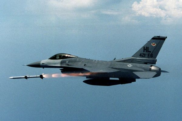 资料图片:美军F-16战机发射AIM-120中距空空导弹。(图片来源于网络)