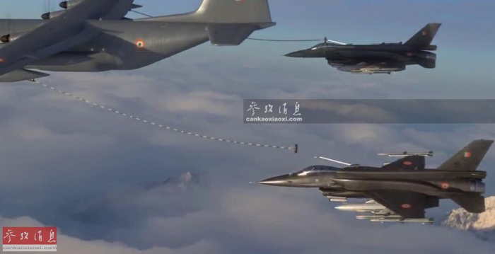 再来看洛马宣传的全新战机“F-21”,实际就是F-16 Block 70(第70批次)的“换皮型号”,外形上与F-16E /F“沙漠隼”区别不大,也加装有保形油箱和脊背设备舱,为适应印度空军的伊尔-78加油机,还另加装了软式加油探管(F-16原采用硬式加油方式,加油口位于机背)。