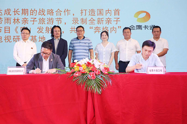2019年7月,双方首个文旅合作项目“奔格内金鹰乐园”将在海南琼中落地,金鹰卡通卫视金牌水上亲子竞技节目《嘭 !发射》将永久落户奔格内金鹰乐园。