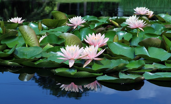 睡莲:浮于或略挺出水面,花色有红、粉、白、黄,花期4-11月,花后种子在水面下成熟。睡莲从东北至云南,西至新疆,广泛分布。本次展览的睡莲以10个胎生睡莲和2个古老热带睡莲(总计12个品种)为主,辅以少量温带睡莲品种。胎生睡莲是一种非常特殊的现象,世界上具有胎生功能的原种睡莲只有小花睡莲一种,但通过园艺学家们的不懈努力,又杂交培育出了许多具有胎生功能的睡莲品种,在本次展览上市民游客就能看到其中的“优秀代表”。主要观赏区域是2号门大水池、绿荫轩水池、2号门3号门跌水内、槭树园、桂花园水池。