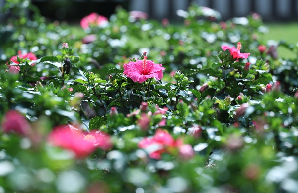 陆地上,扶桑开得热情奔放,各色芙蓉葵和木槿比美斗艳;水面上,荷花亭亭玉立,睡莲娇俏多姿,王莲再度展现它水中大力士的霸气……如此多彩的夏季景观,得益于多年来上海植物园根据“四化”(绿化、彩化、珍贵化、效益化)要求所开展的一系列夏季新优观赏植物的收集和应用。