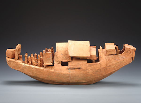 2010年、广西壮族自治区贵港市梁君垌14号墓出土,广西文物保护与考古研究所蔵。在汉代和三国时期,这种船模型在堡垒沿岸的墓葬中被大量挖掘。对外海洋贸易的蓬勃发展,是吴国的特征。
